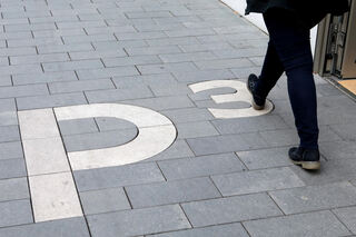 Sogenannte Intarsien zeigen auf dem Pflaster an, in welchem Quadrat man sich befindet.