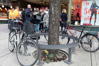 Die Baumumrandungen sollen als Sitzgelegenheiten dienen, werden aber vor allem zum Fahrräder-Abstellen genutzt.