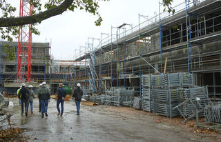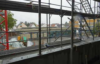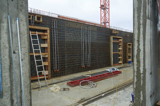 Auf dem neuen Ostflügel fehlt noch der oberste Stock, der Nordflügel hat seine Höhe so ziemlich erreicht.