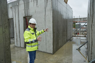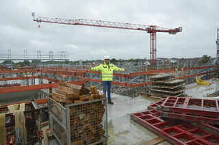Architekt Klaus Klinger im zweiten OG - allerdings noch ohne Dach überm Kopf.