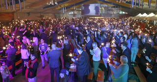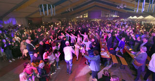 Durch Hunderte von Sternspritzern prächtig illuminiert, präsentiert sich das Festzelt unmittelbar vor dem Einzug der neuen Weinhoheiten.