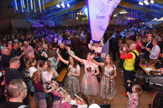 Und hier der triumphale Einzug der neuen Weinhoheiten in das illuminierte Festzelt.