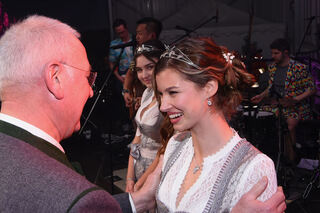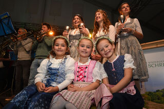 Zu Beginn dieses eindrucksvollen Abends halten die scheidenden Weinhoheiten Sophie, Miriam und Ylva ihren Einzug ins proppenoll besetzte Festzelt.