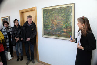 Dr. Barbara Gilsdorf führte anlässlich des 100. Geburtstag des Schwetzinger Künstlers Heinz Friedrich eine Gruppe durch die Rathaus-Galerie und die Innenstadt.