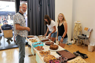 Die Hebelianer verkaufen Kuchen, um so Geld für den Abiball einzunehmen.