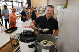 Dr. Jürgen Lübbehusen hat die Weißwürste im Griff.