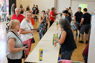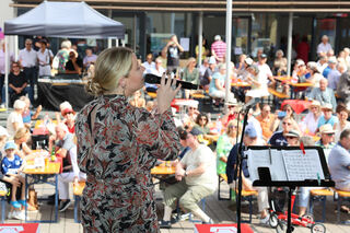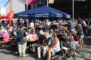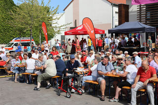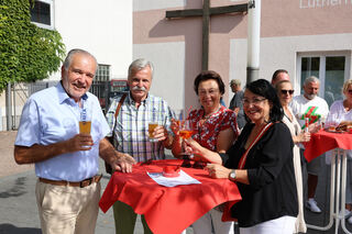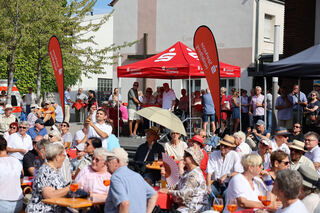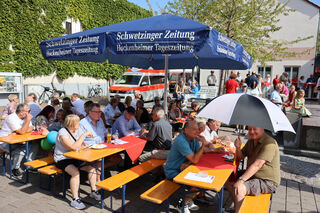 Im Lutherhaus ist der Förderverein der Lutherkindestagesstätte zugange. Hier gibt's Getränke, Weißwürste und Obazda.