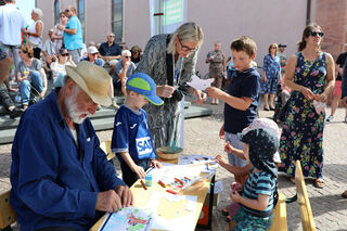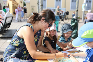 Am Stand der Schwetzinger Zeitung konnten Kinder basteln und malen - und nicht nur die Kinder...