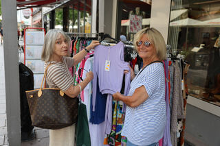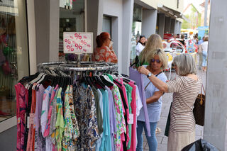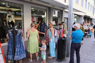 Beim Modehaus "Bräuninger" stöbern viele Menschen an den Verkaufsständen.