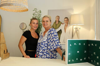 Die Chefin von der Boutique "Lieblings", Aline Grotelüschen, zeigt ein Stück aus der neuen Kollektion ihrer Kundin Caro.