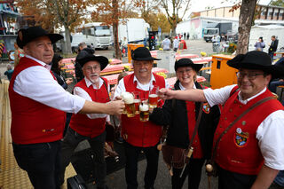 Ordnungsamtleiterin Yvonn Rogowski, Jochen Wiegand vom Förderverein für StädtepartnerschaftenSchwetzingen und Monika Steidle, CDU-Stadtverband genießen das erste Bier auf der Kerwe.