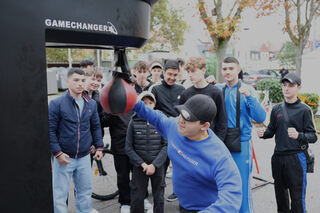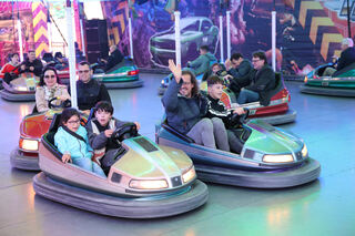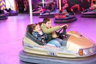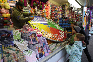 Kids am Boxautomat auf der Schwetzinger Kerwe.