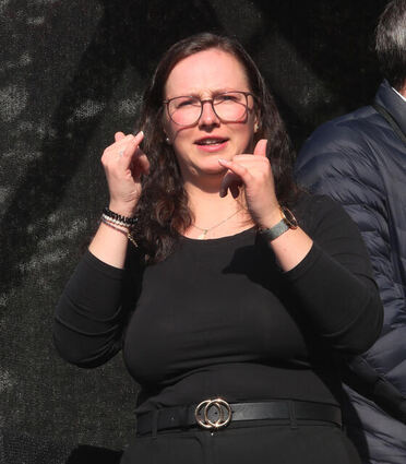 Mit auf der Bühne: Gebärdendollmetscherin Sophie Striehl.