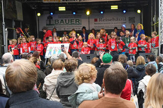 Die sind aber auch schon aufgeregt - denn die Kindergartenkinder vom Aubuckel dürfen auf der großen Bühne das Kerwelied singen.