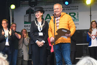 Festakt mit Schlüsselübergabe: Kerwebürgermeisterin Irmi Benz und Bezirksbürgerserviceleiter Frank Kassner.