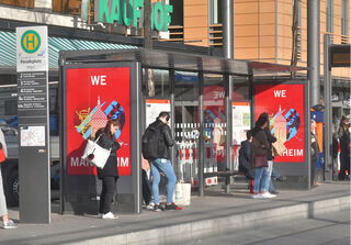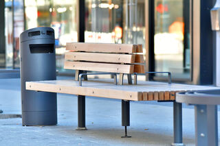 Sitzbänke: Zum Ausruhen stehen den Passanten 27 Bänke mit Holzauflage zur Verfügung. „Via Futura Mannheim“ ist der Name der schlichten und eleganten Möbel. Lehne und Sitzfläche sind aus Douglasienholz gefertigt. Schon bald soll sich die Holzfarbe in einen natürlichen, silbergrauen Farbton verwandeln.