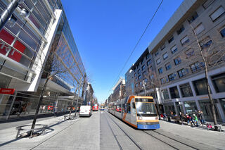 Haltestellen: Drei Haltestellen für die Stadtbahn, jeweils in beide Richtungen, wurden im Zuge des Umbaus erneuert. Die 60 Meter langen Bahnsteige sind im mittleren Teil rund 30 Zentimeter erhöht, um ein barrierefreies Ein- und Aussteigen zu ermöglichen. Auch die Rückseite zu den Gebäuden hin ist stufenfrei und an das Höhenniveau der Fußgängerzone angeglichen.