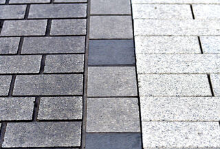 Pflaster: Helle Pflastersteine aus Beton, dunkle Steine aus Basalt. Die farbliche Abwechslung soll ein stimmiges Erscheinungsbild ergeben. Die Modelle wurden vor der Auswahl mehrere Monate lang auf einem Pflasterprüffeld in den Planken zwischen O 2 und O 3 auf ihre Fleckempfindlichkeit getestet. Eine Beschichtung aus lösungsmittelfreiem und umweltverträglichem doppelten Acryllack soll verhindern, dass Schmutz in das Pflaster eindringt. Blindenstreifen mit Noppen und Linien sollen Sehbehinderten die Orientierung erleichtern.