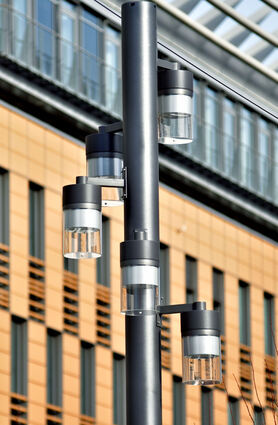 Beleuchtung: Hell wird es in den Abend- und Nachtstunden durch warmweiße LED-Leuchten, die wesentlich energiesparender als früher sind. Das Licht spenden 46 kombinierte Masten, an denen die Leuchten und die Fahrdrähte der Straßenbahn (Oberleitung) montiert sind. An jeder dieser Säulen sind fünf Lampen spiralförmig montiert. Hinzu kommen 24 reine Lampenmasten.