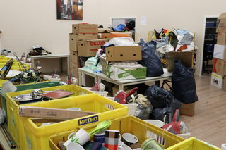Hier werden die Spenden sortiert. Mitarbeiter mit und ohne Einschränkungen arbeiten hier zusammen.