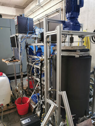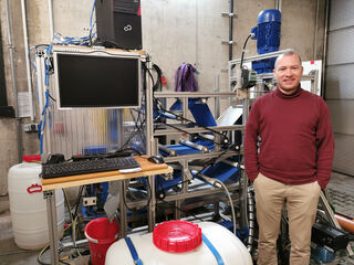 Viele Kabel, ein Kanister und viel Technik: Erfinder Lars Erlbeck von der Hochschule Mannheim tüftelt weiter an seinem neusten Projekt: einer Entsalzungsmaschine im großen Stil.
