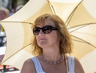 Bei den herrschenden sehr heissen Temperaturen ist ein Regenschirm als Sonnenschirm ein gern genutztes Accessoire, auch wenn diese eigentlich aus Sichtgründen nicht genehmigt sind.