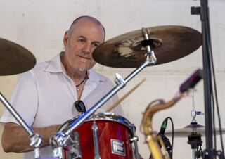 Hans-Jürgen Götz lässt sein Schlagzeug ertönen.
