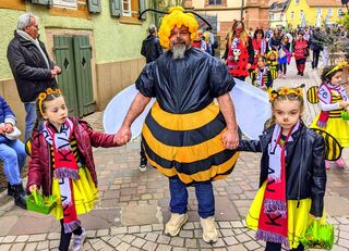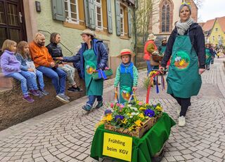 Kleine und größere Aktive des Kleingärtnervereins zeigten beim Sommtagszug in Ladenburg Flagge. Bild: Peter Jaschke