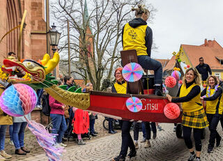 Vereine wie die Drachenbootabteilung des FV 1903 Ladenburg machen fröhlich auf sich aufmerksam. Bild: Peter Jaschke