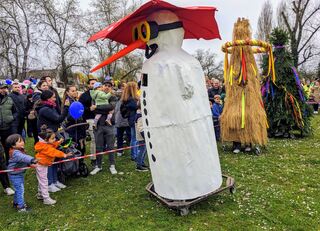 Schneemann, Winter und Sommer drehen zum Abschluss eine Ehrenrunde, bevor eine der Figuren Abschied nehmen muss. Bild: Peter Jaschke