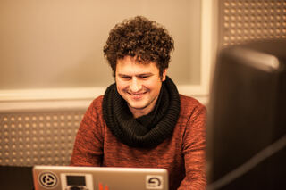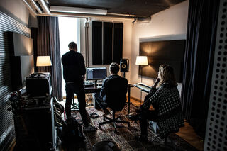 Gross (v.l.), Zirr und Friedenberg im Studi bei der Arbeit.