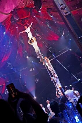 Requisiten aus großen Zirkusarenen und Akrobatik-Inszenierungen gehören auch in der Jubiläumsshow zum Programm.