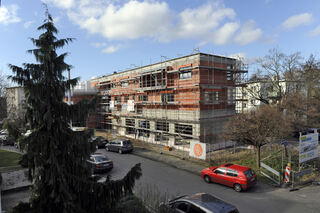 Das Gebaeude dürfte sich gut in die umgebende Bebauung einfügen.