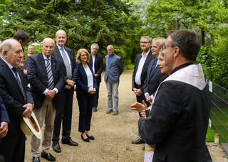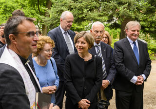 Gemeinsames Gedenken (v.l.): Dekan Mannheim Karl Jung, Roswitha Schineller, Witwe Maike Kohl-Richter, der ehemalige behandelnde Arzt Prof. Uwe Ikinger, MDL Michael Wagner.