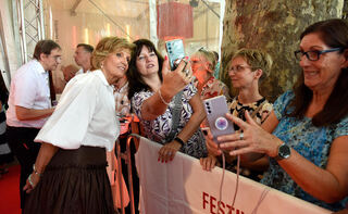 Fans und Stars trafen am roten Teppich aufeinander. Hier gibt es ein Selfie mit Schauspielerin Ulrike Kriener.