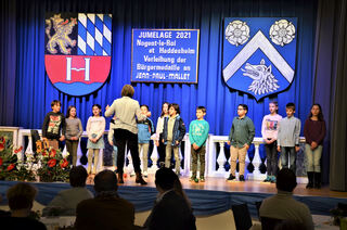 Die Klasse 4b singt für die Gäste.