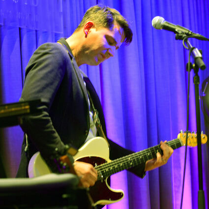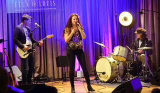 Glänzendes Trio (von links): Gitarrist Daniel Stelter, Sängerin und Multiinstrumentalistin Stephanie Neigel im Trio mit Drummer Tommy Baldu.