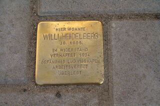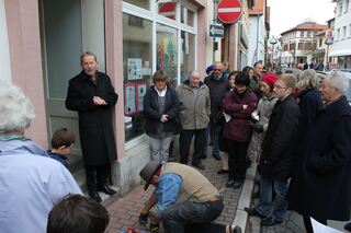 Mai 2007: Zur Erinnerung an die Opfer der NS-Zeit verlegt Gunter Demnig aus Köln in Ladenburg vor den letzten Wohnstätten der Verfolgten kleine Gedenktafeln ins Altstadtpflaster.
