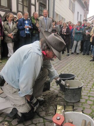 Juni 2013: Künstler Gunter Demnig verlegt Steine in Schriesheim.