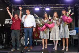 Offizielle Eröffnung mit dem Vorsitzenden des Verkehrsvereins Schriesheim, Joachim Müller (v. l.), Bürgermeister Christoph Oeldorf und den Weinhoheiten um Weinkönigin Anna.
