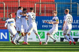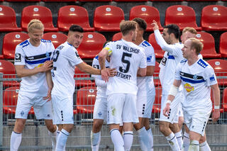 Die Spieler vom SV Waldhof Mannheim feiern den Führungstreffer.