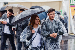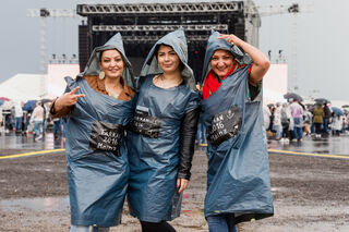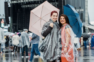 Dem Regen trotzten viele Konzertbesucher mit Plastikumhängen und Schirmen.