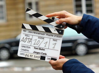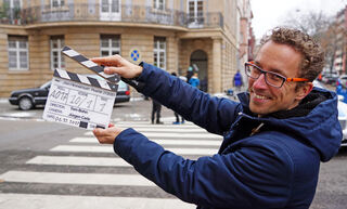 Ausführender Produzent Nils Reinhardt hält die Klappe.