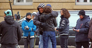 Umarmung nach erfolgreichem Szenendreh: Regisseur Tom Bohn versteht sich mit Ulrike Folkerts.