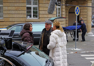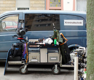 Ulrike Folkerts fährt als Lena Odenthal am Tatort in der Wittelsbachstraße vor ....