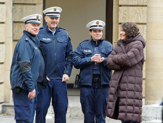Kollegen unter sich: Ulrike Folkerts mit Darstellern von Polizeibeamten.