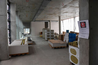 Oben Rohbau, unten bereits fertigg gestrichene Decken und Wände. Bild: Ruffler