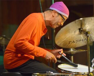 Eindrücke von Allen Blairman am Schlagzeug: Blairman bei Jazz im Quadrat in Mannheim.