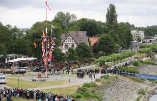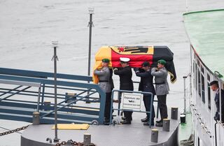 ...auf die MS Mainz mit dem Sarg von Altkanzler Helmut Kohl.