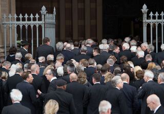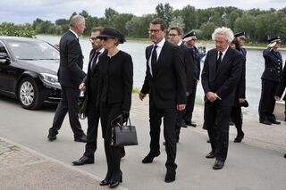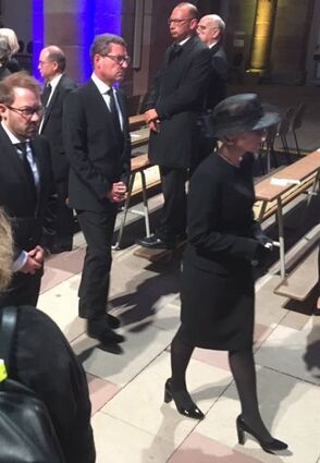 Maike Kohl-Richter nach dem Requiem beim Ausmarsch aus dem Dom, direkt dahinter läuft Ex-BILD-Chef Kai Diekmann.